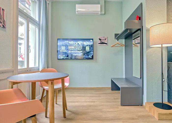 تقع Bank House Studio M 102 - Griwa Rent إنترلاكن المكونة من 1 غرفة نوم مباشرة فى وسط إنترلاكن وتوفّر إطلالات على المدينة. ستجد سيلبارك إنترلاكين على بُعد 18 دقيقة مشياً على الأقدام من الشقة بمساحة 24 مترًا مربعًا.